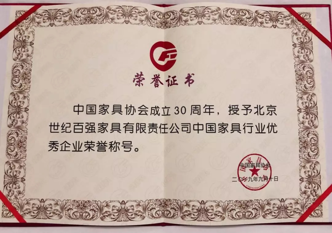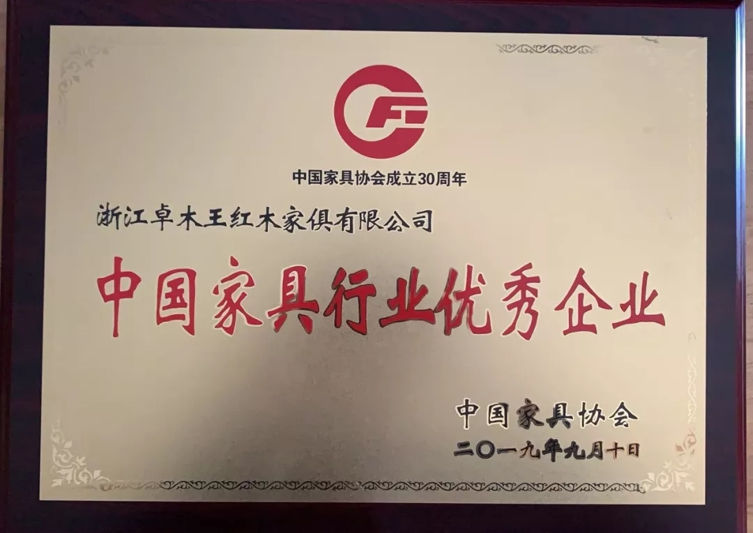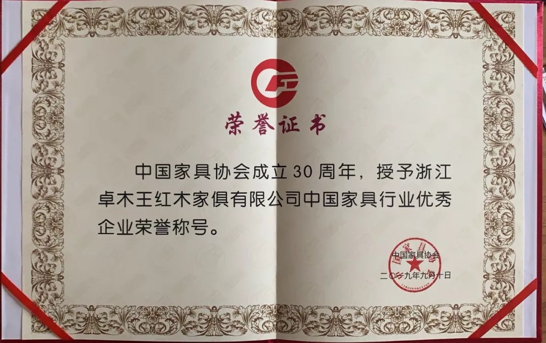中國家具行業優秀企業榮譽稱號